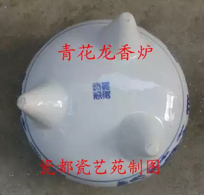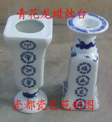 Jingdezhen produced blue and white and blue dragon picture ceramic incense burner candle holder Buddha-temple-Lingtang-tombstone use