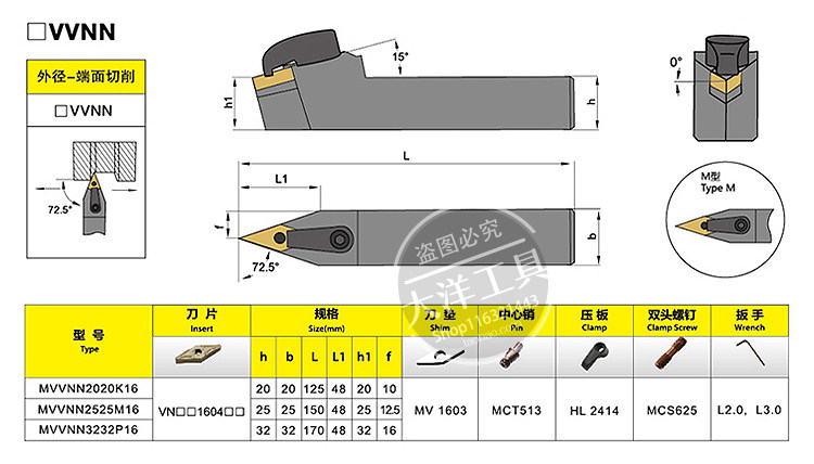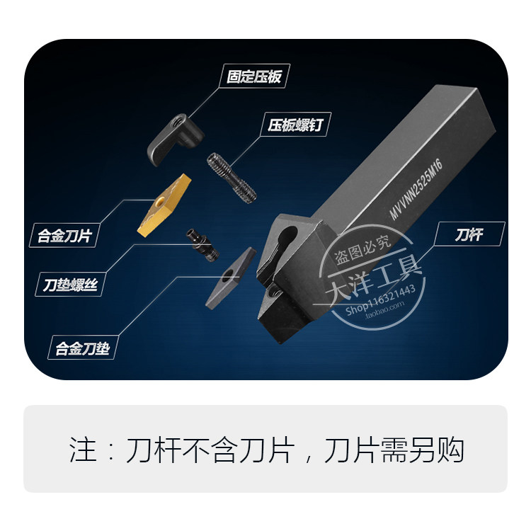 Outer circle turning tool 72 5 degree CNC cutter bar diamond MVVNN 16 square 20 square 25 square 32 square 40 square