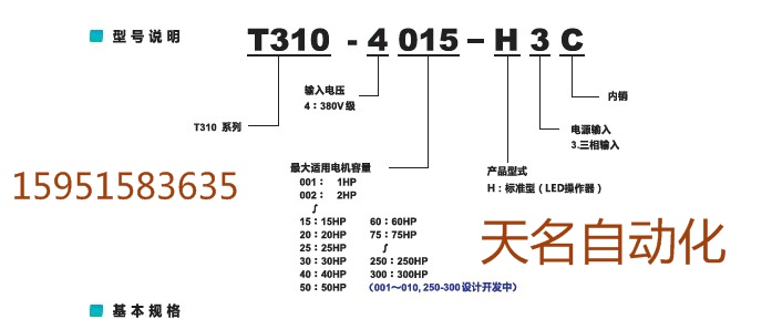 Table on frequency inverter T310 T310-4075-H3C T310-4075-H3C 55KW 380V