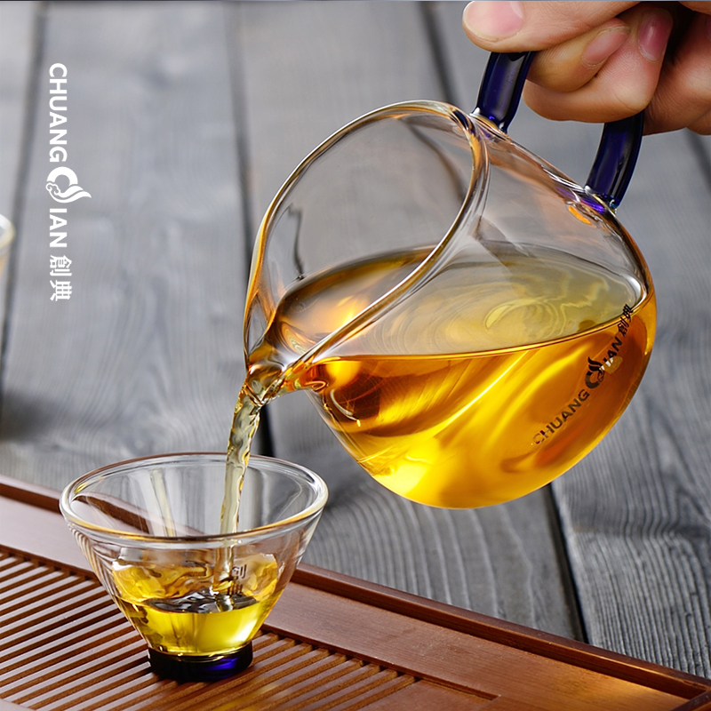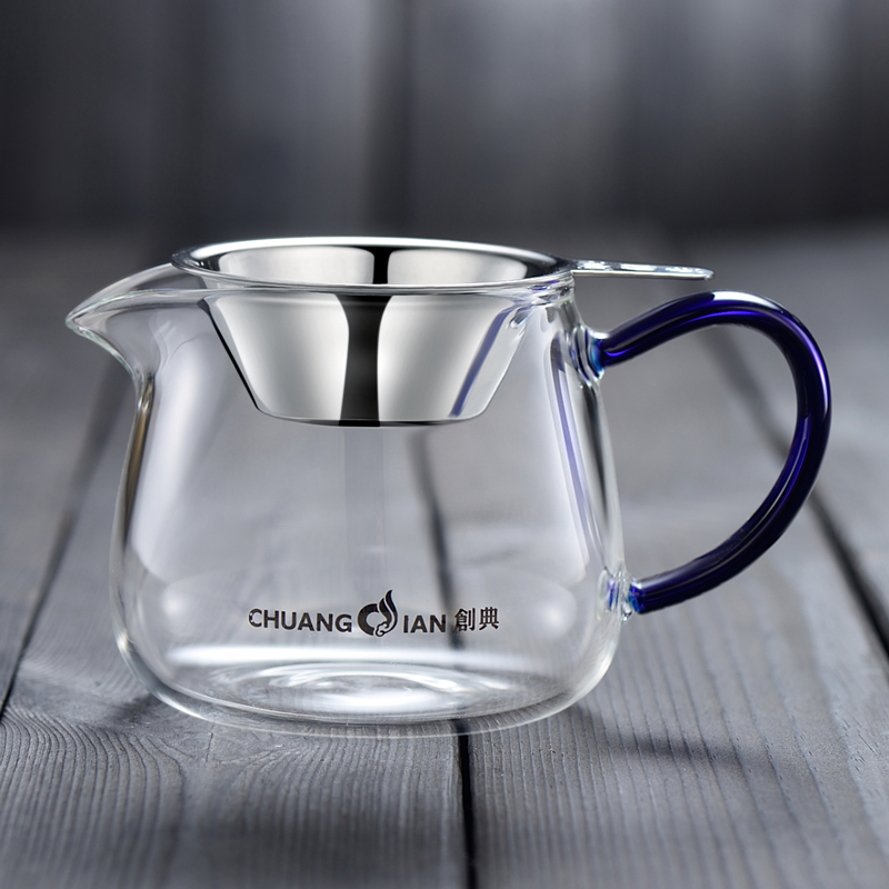 Chuangdian Glass male cup Thickened heat-resistant fair cup Large filter teacup 304 stainless steel tea leak tea dispenser set