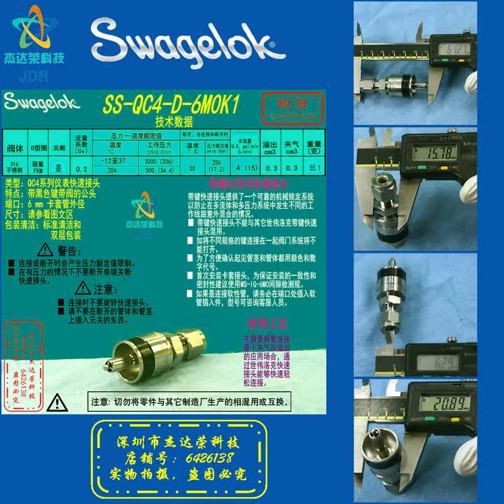 (SS-QC4-D-6M0K1)Swagelok Quick Coupling with Valve 6mm Black Button