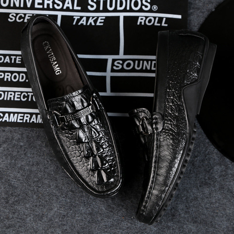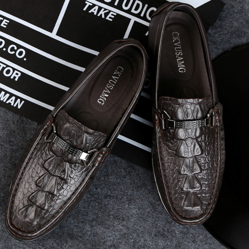 Beanie shoes men's 2022 new spring soft-soled crocodile pattern men's leather leather shoes one foot casual lazy shoes