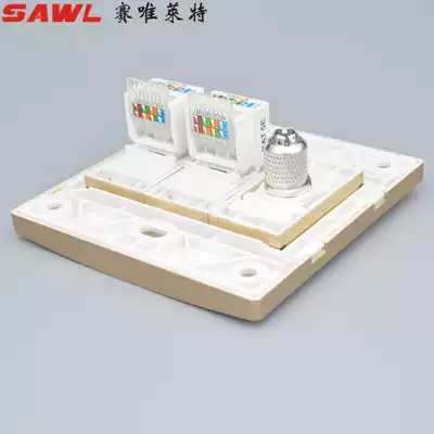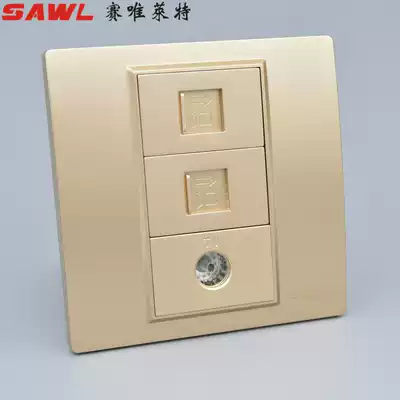 Champagne color 86 type dual computer plus CCTV two-digit network cable Cable TV socket Network fiber optic concealed panel