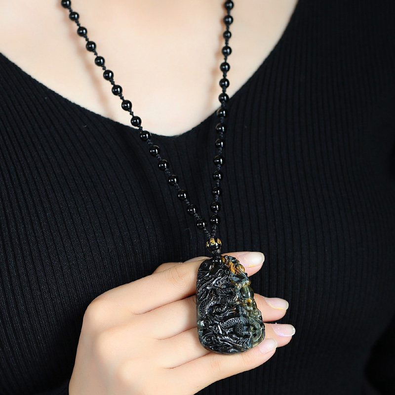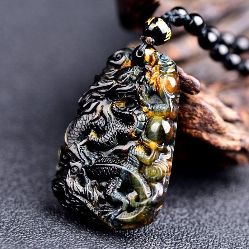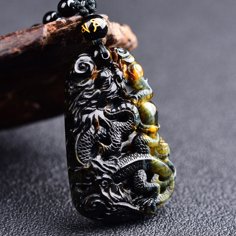 Natural blue tiger eye Stone Xuanlong Tim Shou pendant Silver dragon Guixiang mascot necklace Chen You urge Lu Chenzi Wang official