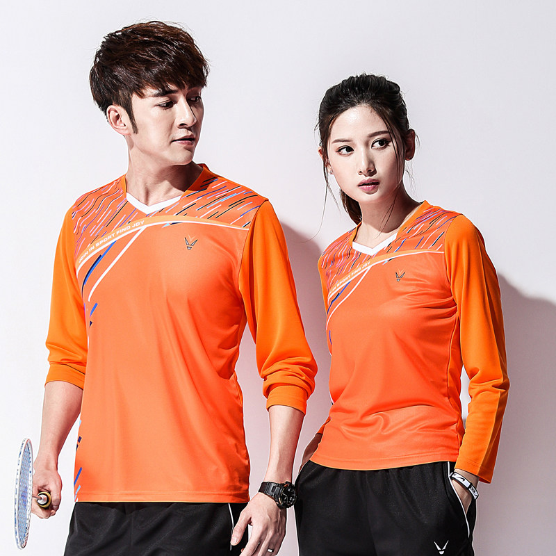 New autumn and winter badminton clothes long-sleeved top men's and women's V-neck lovers table tennis quick-drying trousers sportswear