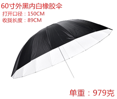 Manufacturer direct sales professional photography umbrella 60 inch 150CM outer black inner white reflective umbrella rubber umbrella Bench white like portable
