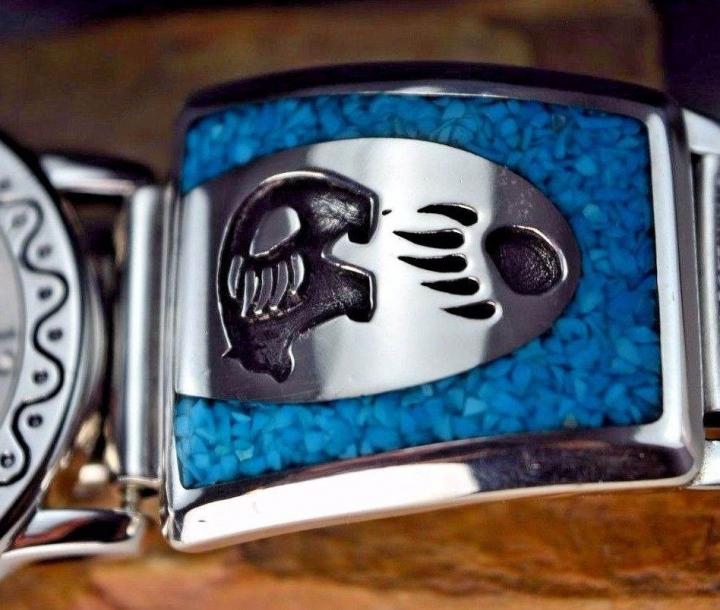 American Beard handmade tribal Navajo small bear claw green pine stone inlaid with 925 pure silver watches watches