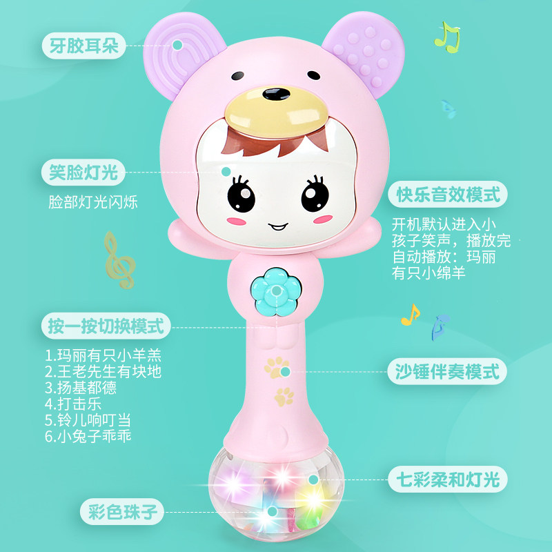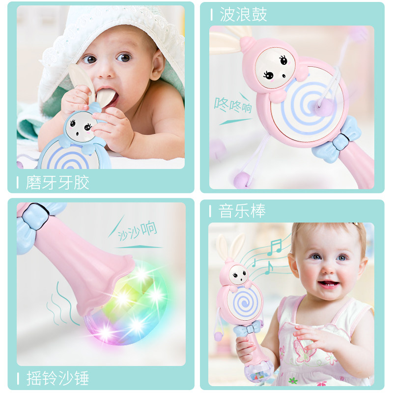 Pink bear music stick (ear soft glue can bite) Blue Bear music stick(ear soft glue can bite) Green Bear music stick(ear soft glue can bite) Pink adorable Rabbit rattle rattle 2