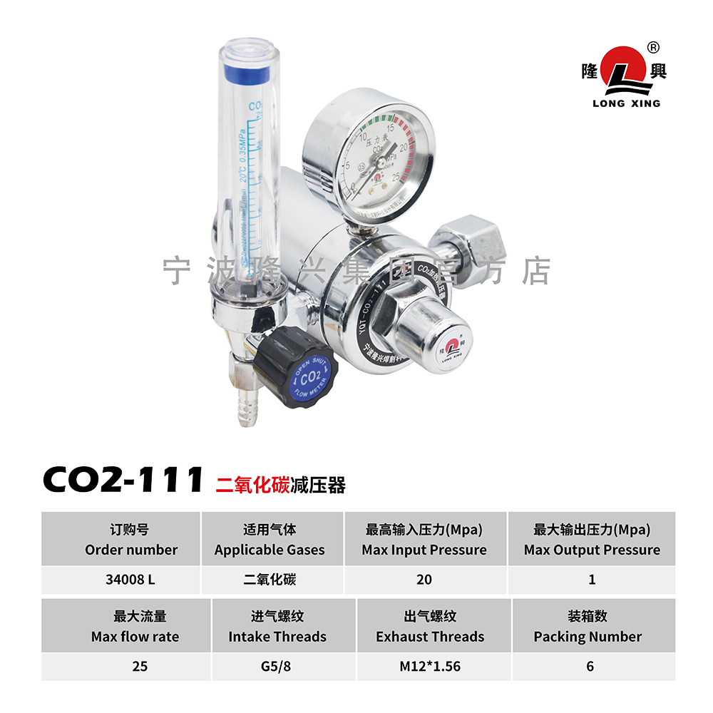 Ningbo Longxing decompression table 36vC02-111 Heater carbon dioxide heating pressure reducer pressure reducing valve