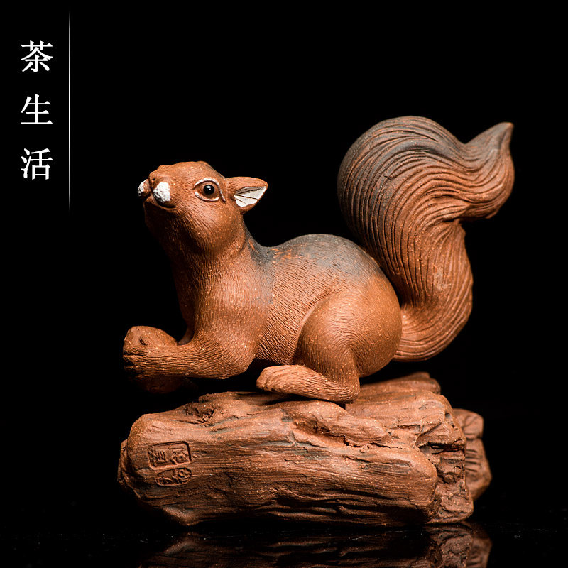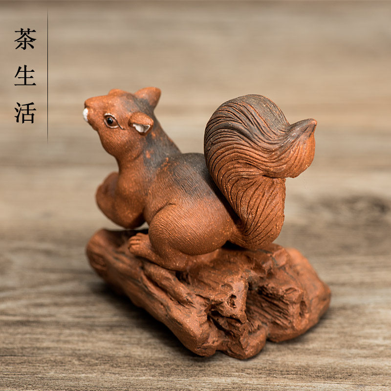 Tea Spotting Piece Boutique Purple Sand Cute Squirrel Sculpture Tea Play Tea Tray Home Decoration Small Pendulum Pieces Purple Sand Gift Items