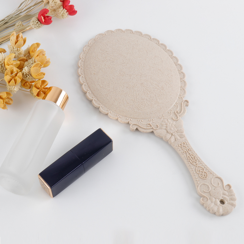 Handheld Beauty Salon Makeup Mirror Minimalist Fashion Middle Number Oval Plastic White Single-sided Cosmetic Mirror HD Lens