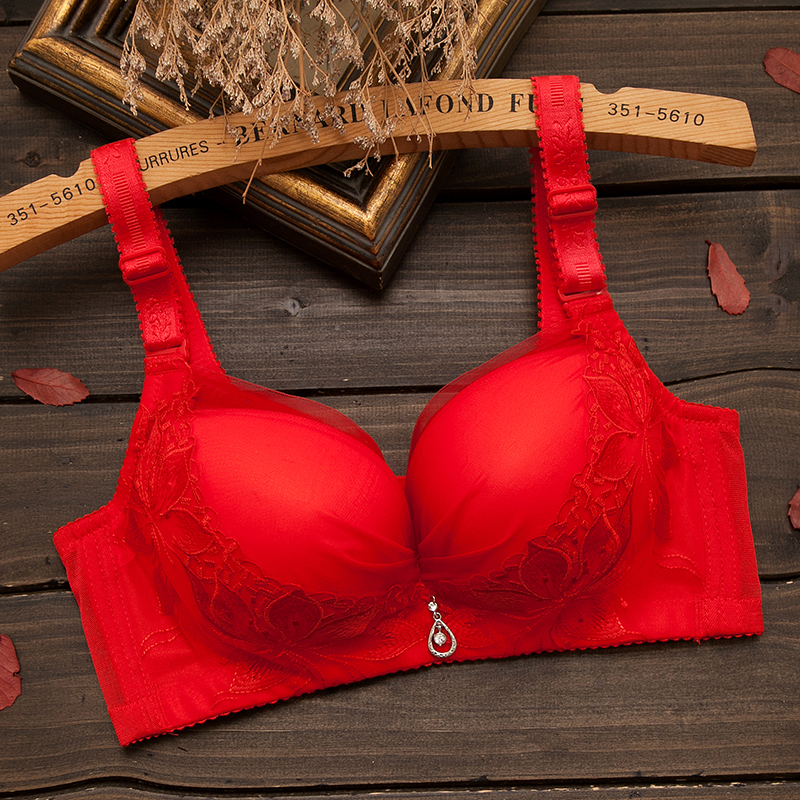 Non-magnetic big red Benming year bra without steel ring festive wedding bride gathered thick thin underwear bra