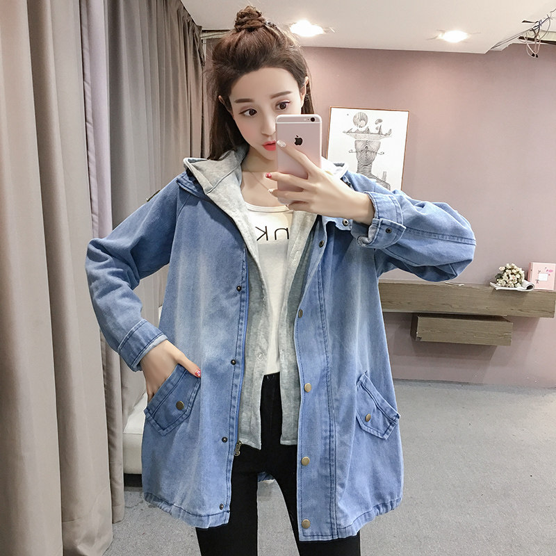 New pregnant woman cowboy coat spring and fall fashion outwear a large number of fat MM loose and thin and two pieces of set