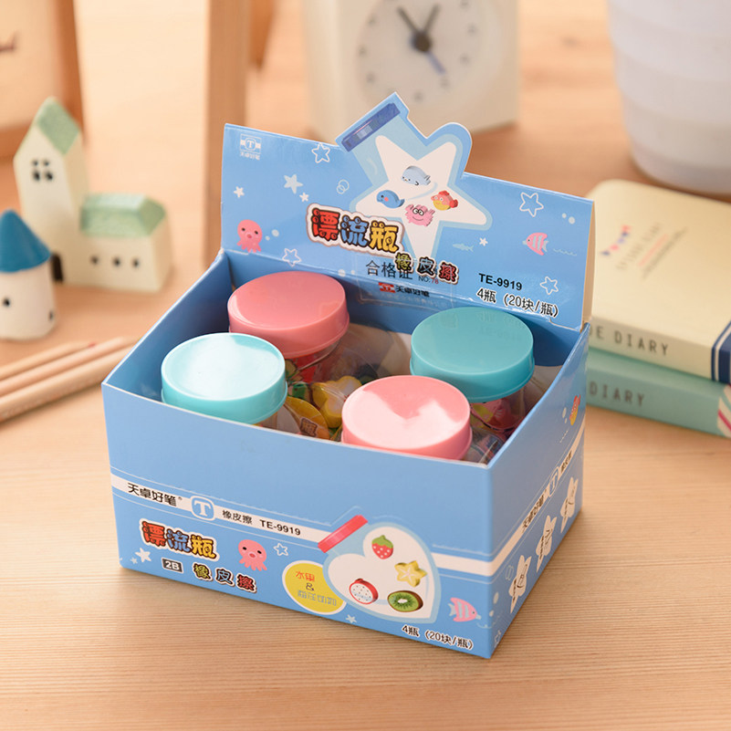 Korean version of creative stationery children's cartoon drift bottle eraser primary school students fruit animal rubber gift prize