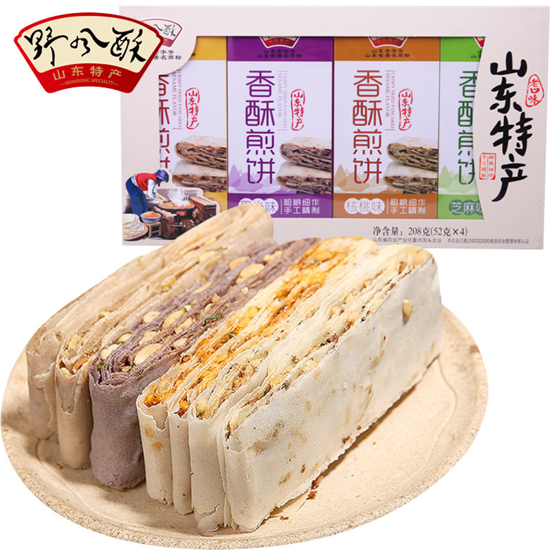 Shandong specialty Wild wind crisp crispy pancakes combination gift box 208g authentic Jinan native snacks