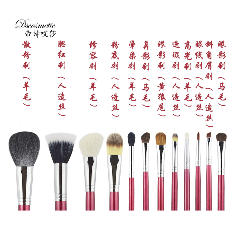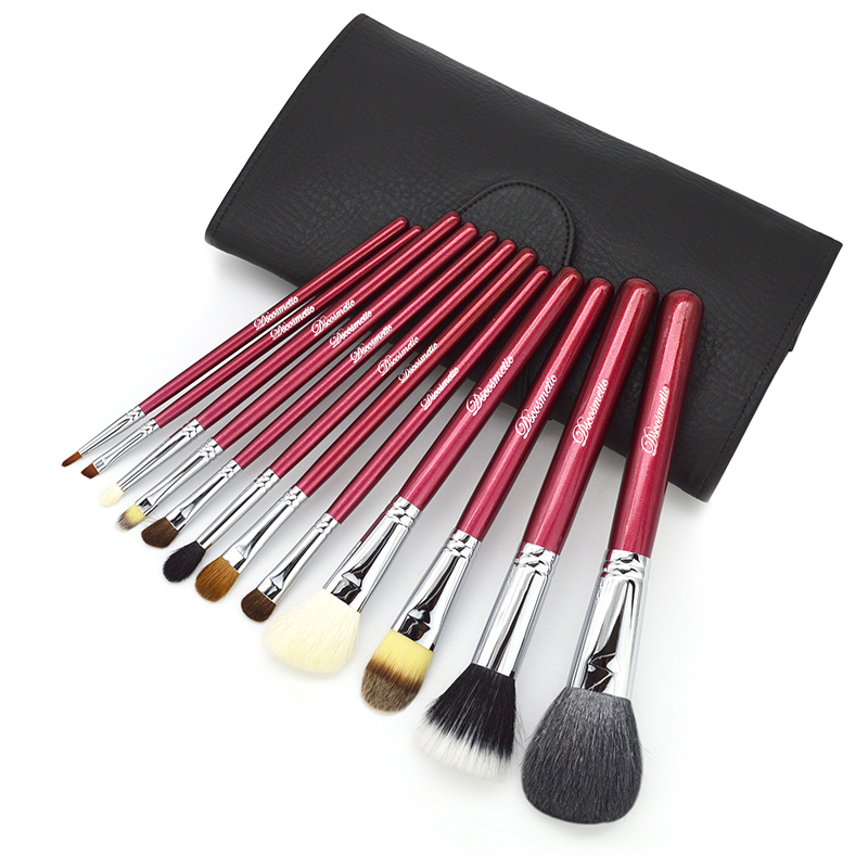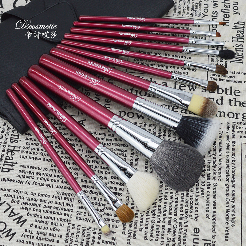 Empoetry Drunk Red Makeup 12 Combinations Animal Hair Makeup Brush Set Group Beginners Full Color Makeup Tool Portable Sleeve Brush