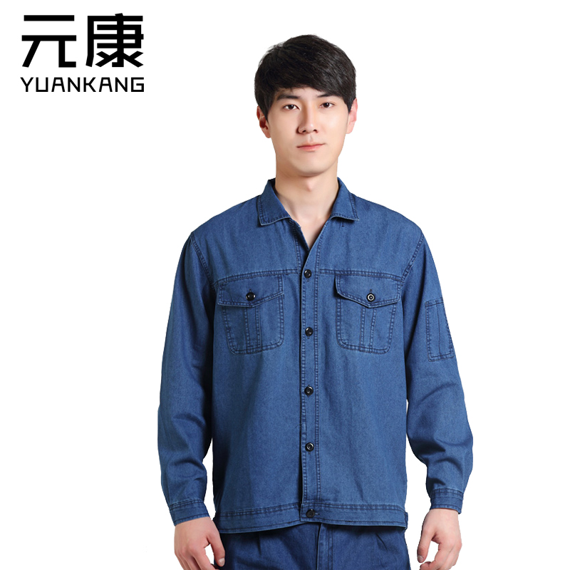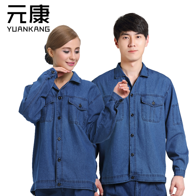 Lingmei custom denim lapel shirt overalls suit men and women long-sleeved autumn and spring welding labor insurance