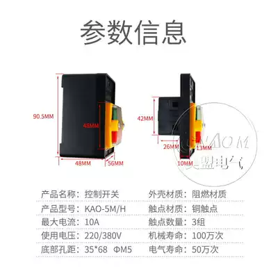 Desktop drilling machine switch Control switch KAO-5M waterproof switch 5H press switch KA0 Start button switch 220v