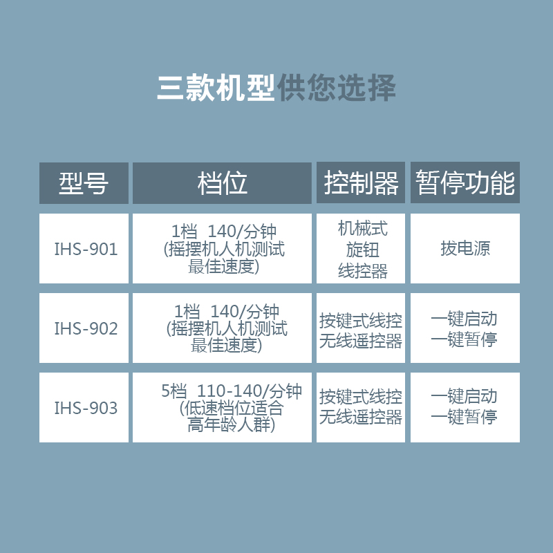 IHS-901 remote control model (no speed regulation)IHS-902 remote control model(no speed regulation)IHS-903 remote control model(adjustable speed)