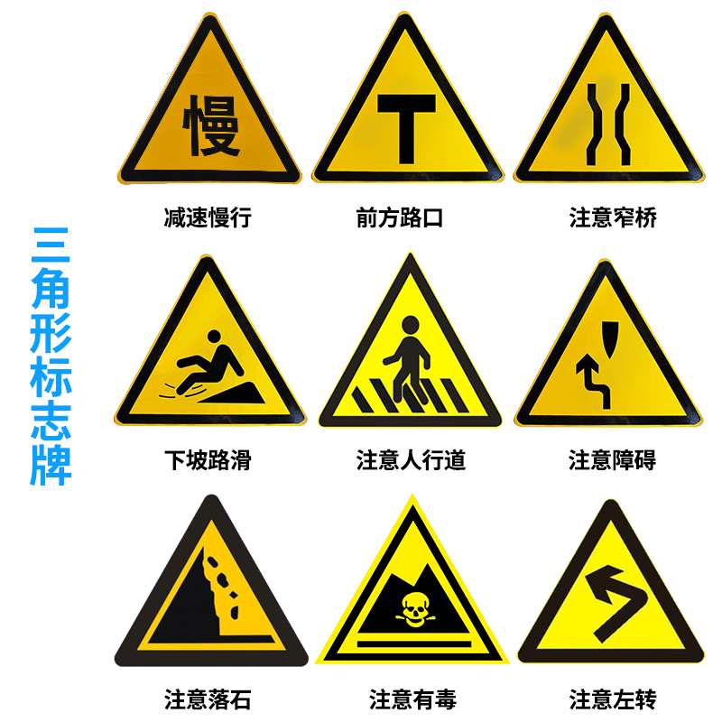 Regular red and white slow red and white speed limit of 5 km red and white prohibits parking red and blue prohibition long time parking red and white prohibited to turn into blue and white left turn, please note the blue and white import and export