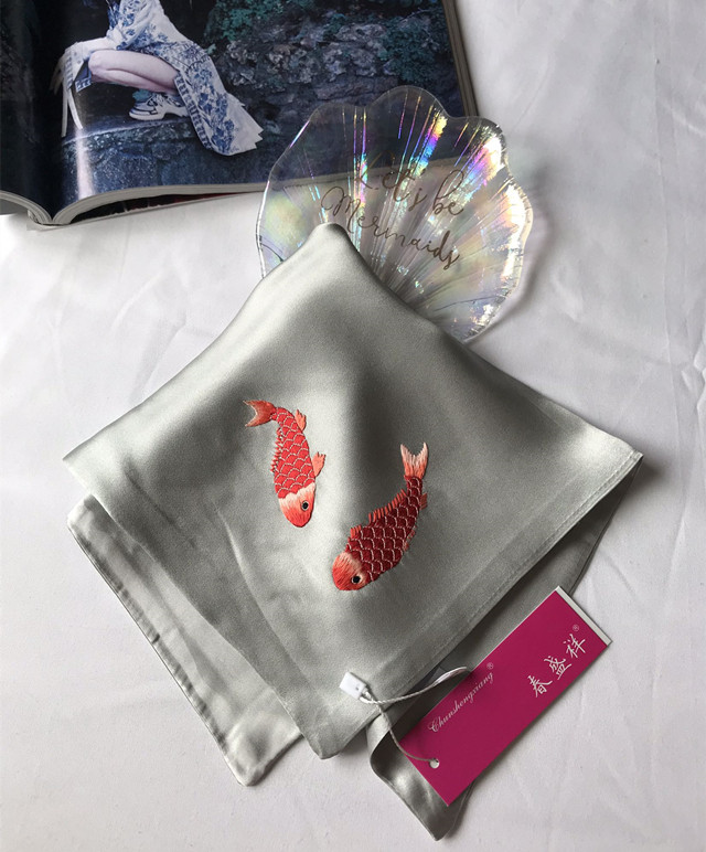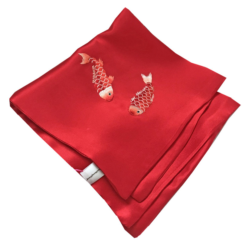 Gift Su embroidery silk handkerchief double layer silk hand-embroidered square scarf gift box carp bergamot lotus