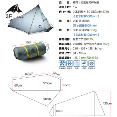Sanfeng sky ultra-light silicon coated single rodless pyramid tent windproof and rainproof outdoor mountaineering camping tent