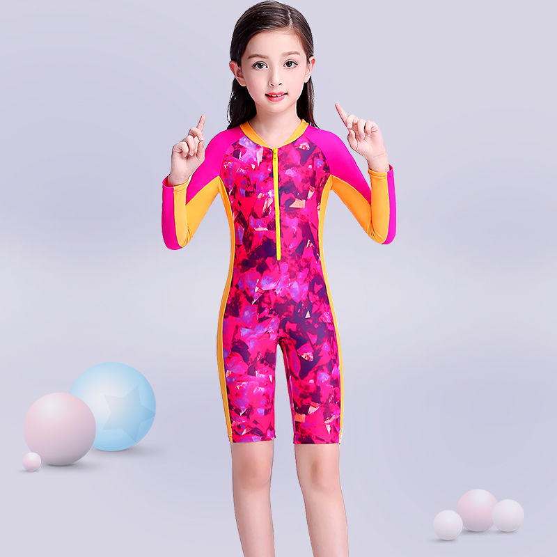New girls 'long-sleeved full body sunscreen swimsuit one-piece girls' children's swimsuit Zhongda Children's hot spring swimsuit