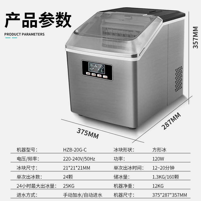Hicon Hui Kang Ice Maker 25kg Home Small Stainless Steel Dormitory Drinking Partner Square Ice Making Machine