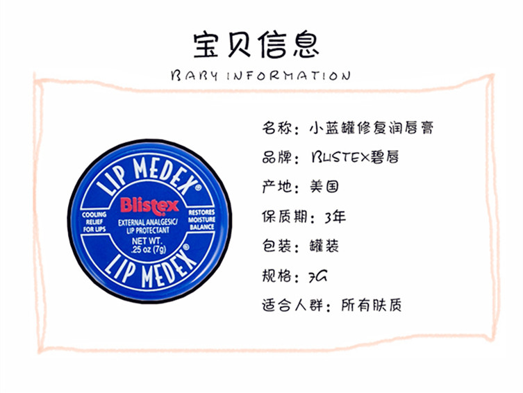 U.S. imports Blistex bilip small blue can lip balm 7g repair moisturizing moisturizing