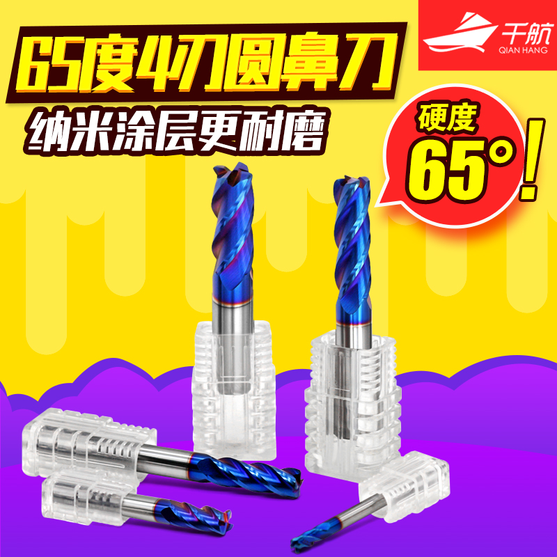 Qianhang 65-degree blue nano-coated high-hardness tungsten steel round nose knife 4-blade R angle tungsten steel alloy milling cutter bull nose knife