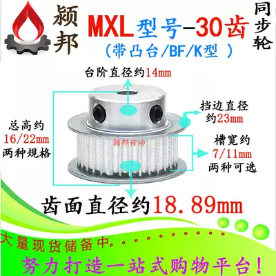 MXL30 tooth synchronous wheel BF K type with step groove width 7 11mm Stepper motor synchronous transmission gear