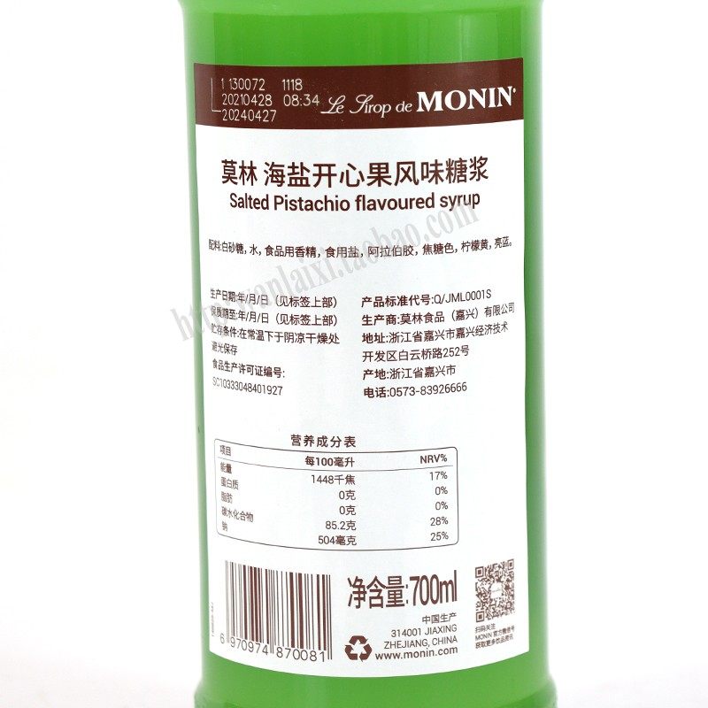 Morin MONIN SEA SALT PISTACHIO SYRUP SALTED PISTACHIO SYRU TUNE DRINK COFFEE 700ml