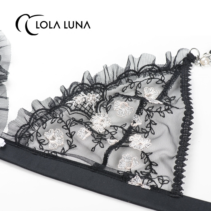 French Lola Luna new (camellia) lace bra without steel ring lace underwear women's triangle cup