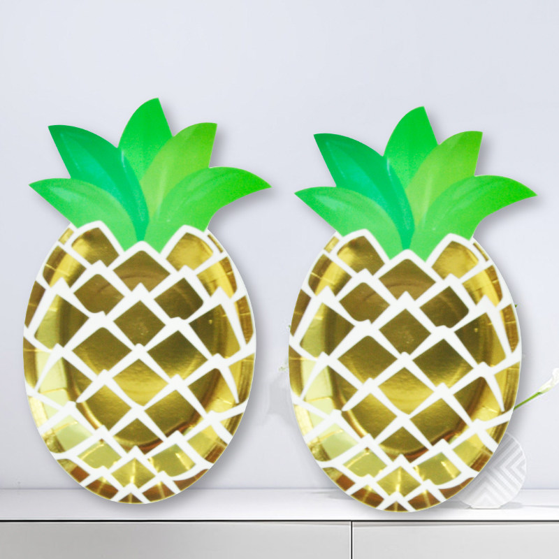 ins Hawaiian theme birthday party adult decoration pineapple bronzing paper plate disposable cake plate dinner plate