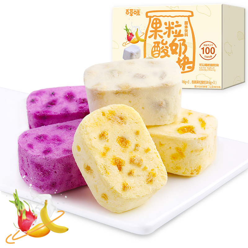 Yogurt Fruit Cubes 54g (Strawberry Blueberry Yellow Peach Flavor) Yogurt Fruit Cubes 54g (Mango Dragon Fruit Banana Flavor) Fruit Cubes Yogurt Cubes 54g (Peach Rose Cherry Passion Fruit) -
