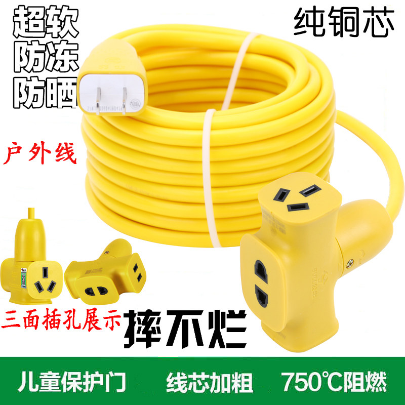 Bull plug board extension line anti-freeze outdoor anti-drop battery electric vehicle charging special 20 30 m extension line