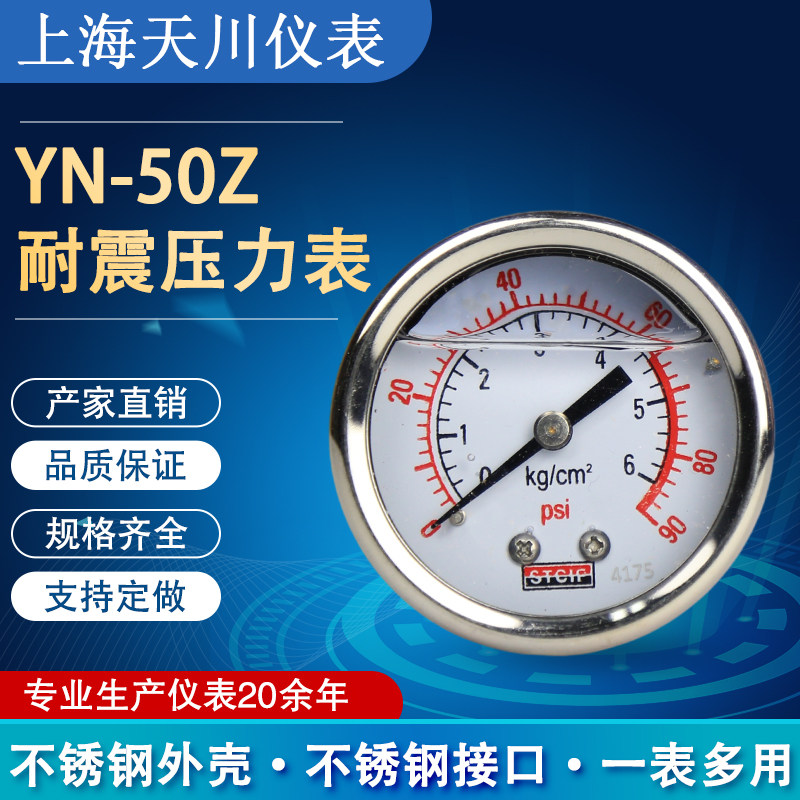 Shanghai tianchuan card YN-50Z- shock-proof axial pressure meter shock-proof hydraulic meter air pressure gauge