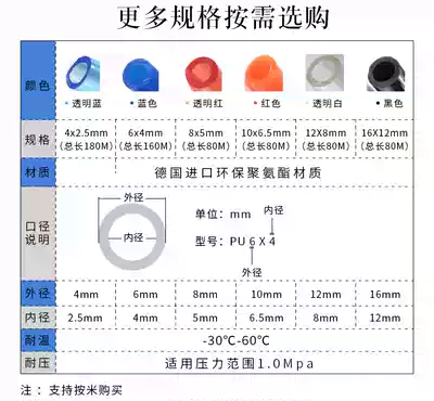 pu8 * 5 air compressor air pipe 8mm hose 10mm high pressure pipe pneumatic joint 6mm transparent air pump air pipe 12mm