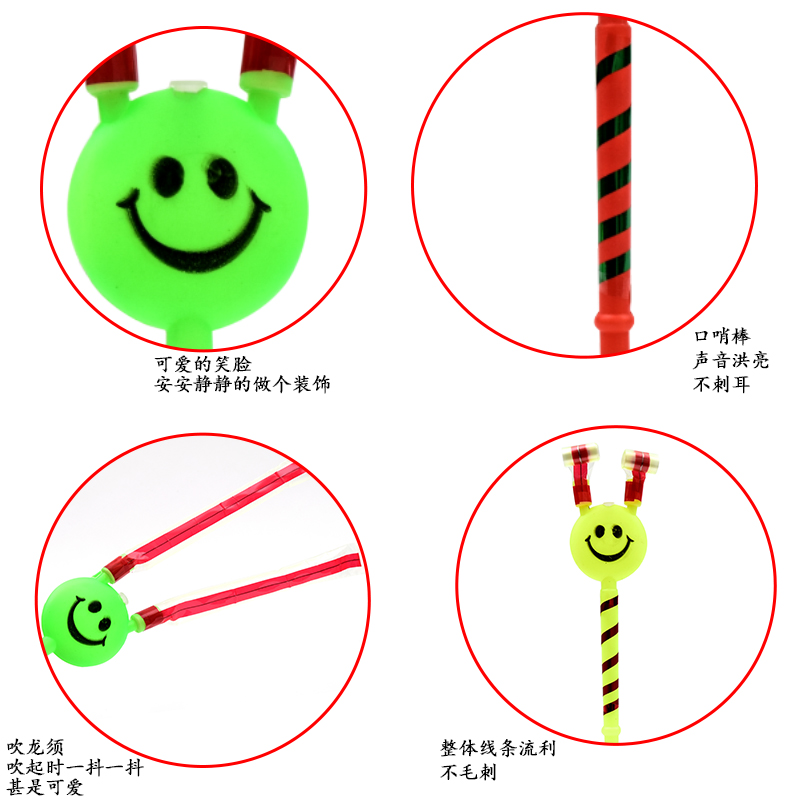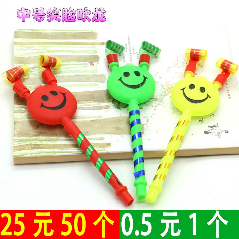 Smiley face blowing dragon toy blowing roll whistle horn kindergarten children's party small gift stall toy supply