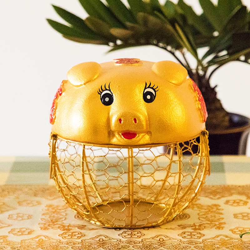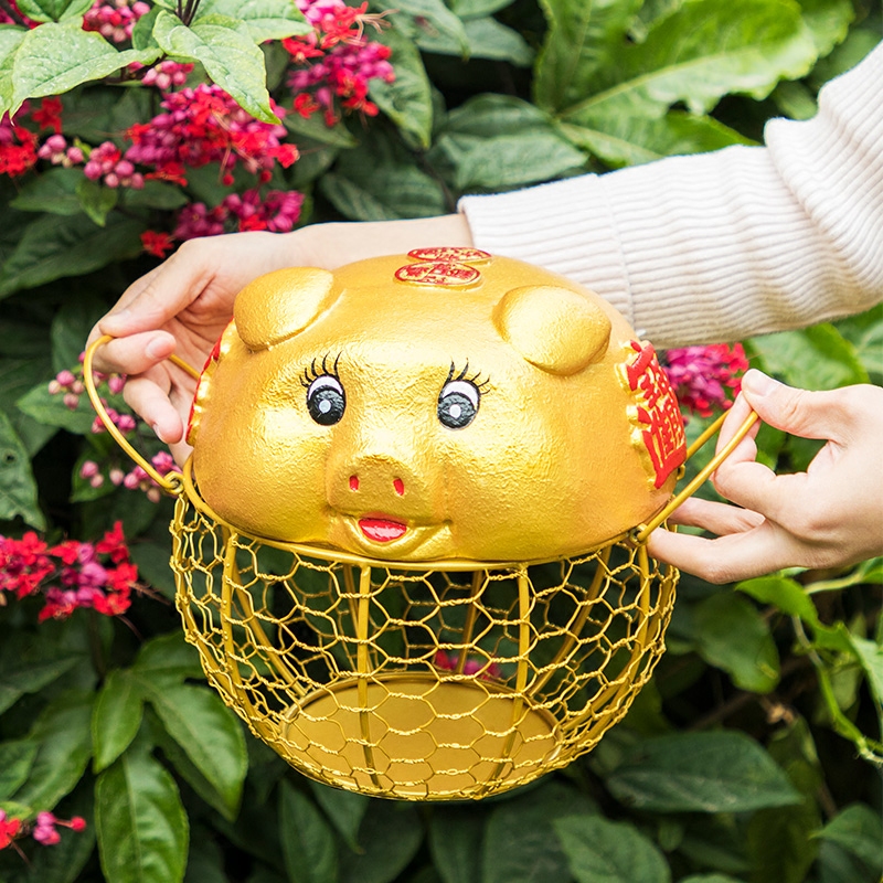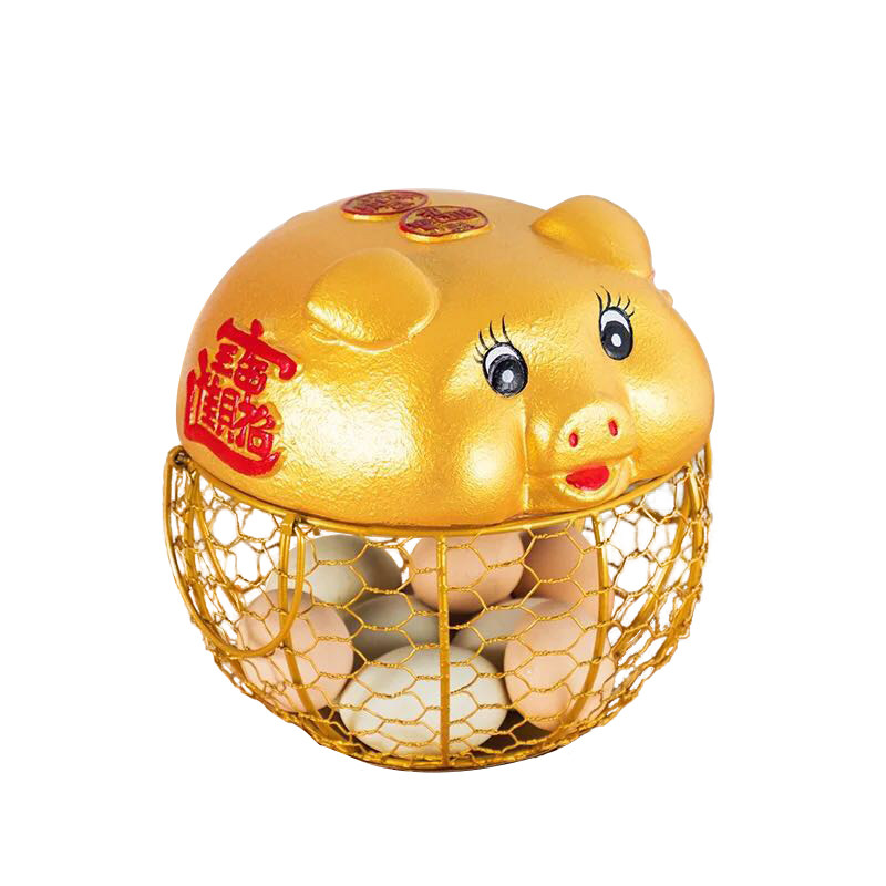 Ceramic Gold Pig Swing Piece Storage Basket Egg Basket Iron Art Containing Basket Living Room Pendulum creative Merchants Opening Gift