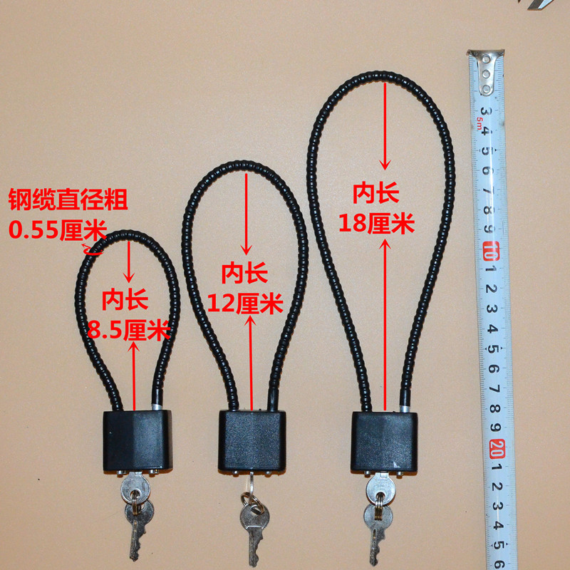 The inner length of 8 5mm red steel cable lock of 12 cm red steel cable lock of 12 cm red steel lock length of 17 cm red steel cable lock 8 5cm black steel cable lock length of 12 cm black length of 12 cm black steel cable lock 1