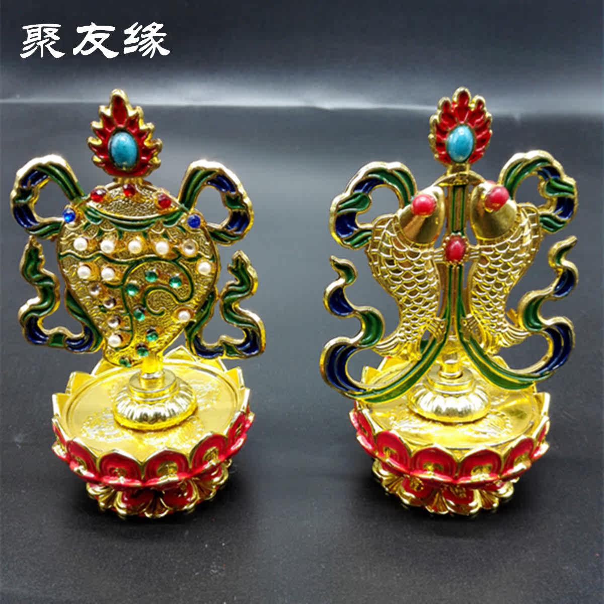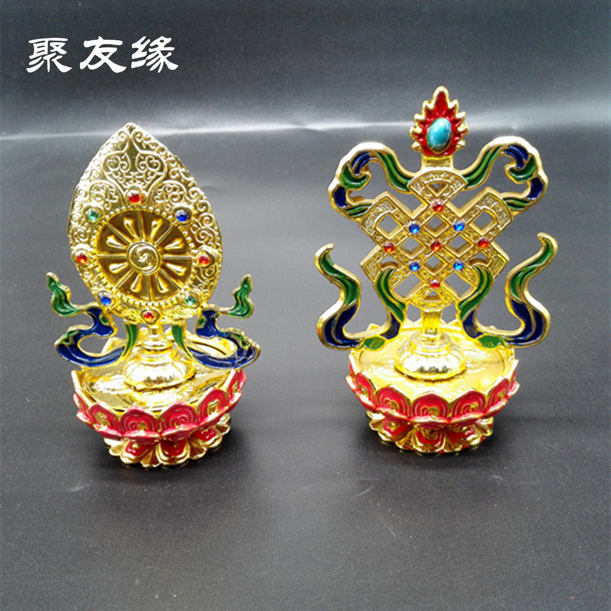 Tibetan craft temple home Buddhist hall supplies gilt painted lotus base eight auspicious ornaments