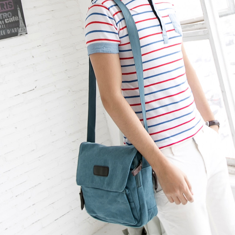 Trendy Men's Bag New Thickened Canvas Single Shoulder Bag Small Bag Casual Delivery Man Sloped Satchel Manmade Small Sloping Satchel
