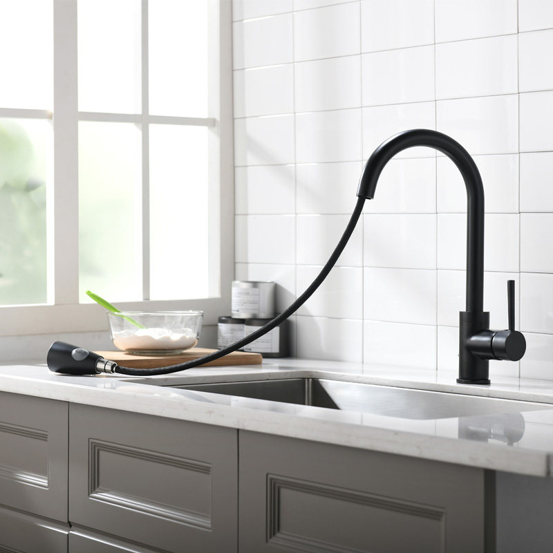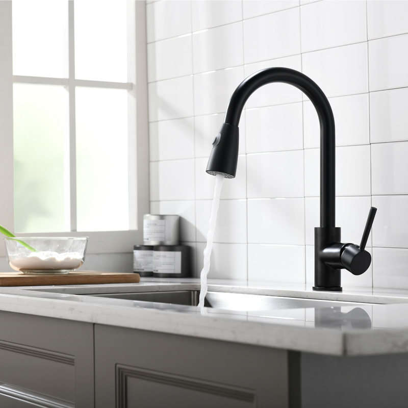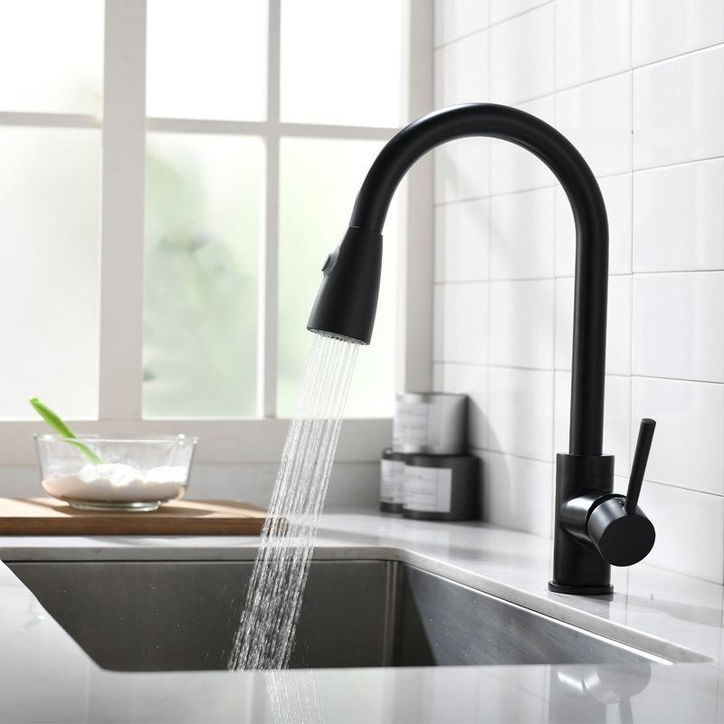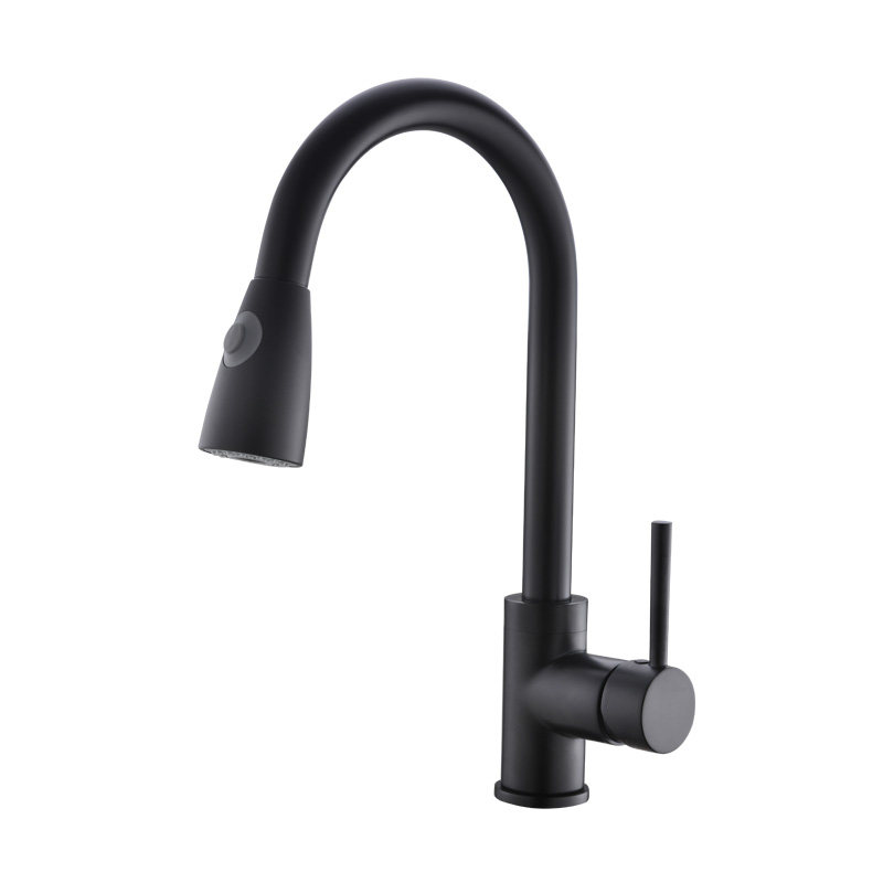 Full copper black matte vegetable basin hot and cold tap suction kitchen tap sink tap frosted black stretch