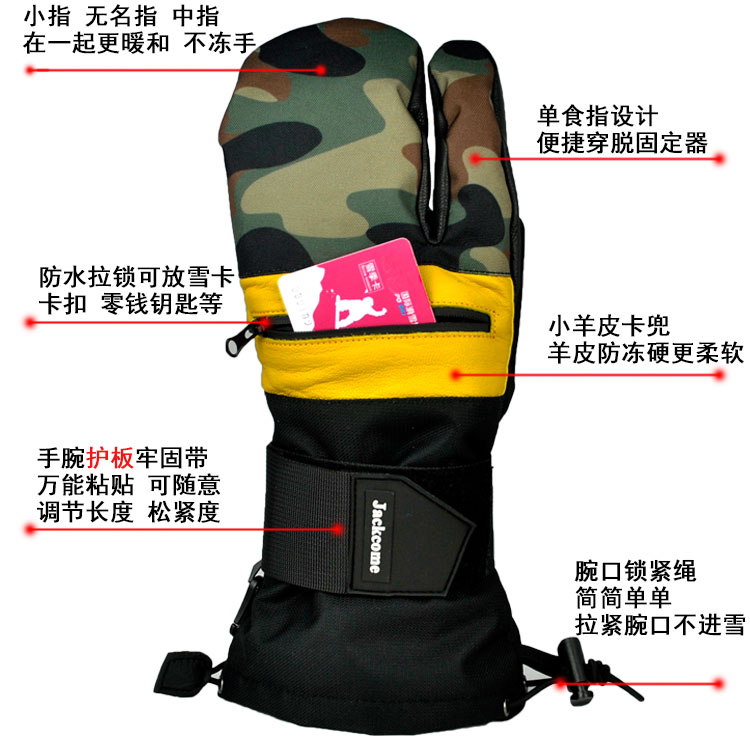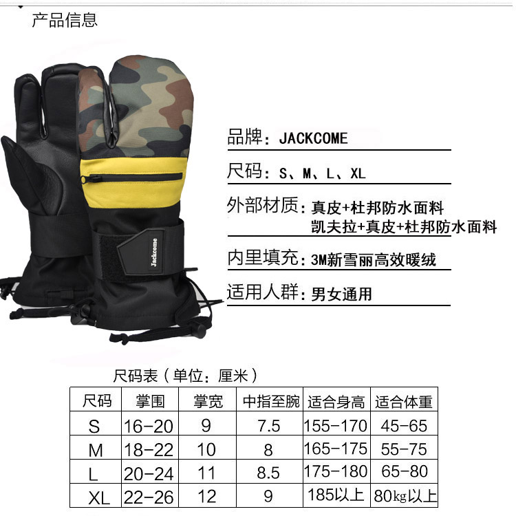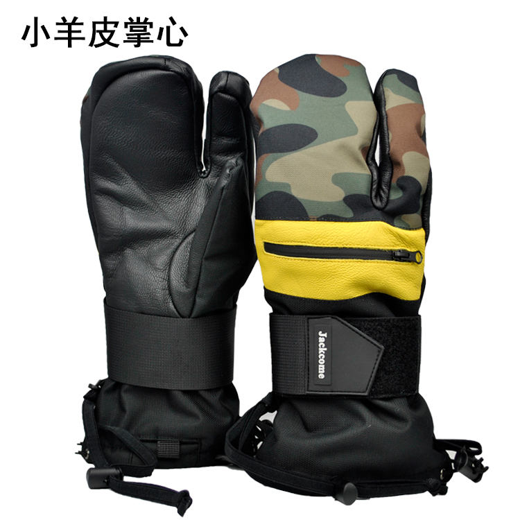 Special leather Kevlar engraved special ski gloves stuffy three-finger guard palm single and double board warm racing waterproof