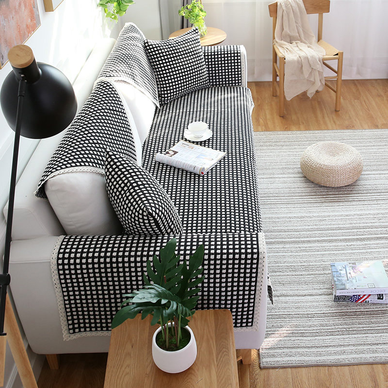 Cotton Hemp Sofa Mat All Season Cloth Art Anti Slip Universal Linen Solid Linen modern sofa cover towel set for full cover