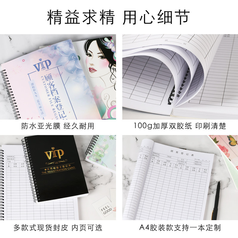 Customer file book a4 beauty salon consumption record book Loose-leaf notebook book Hair salon VIP customer information VIP information Membership General management manual Custom membership registration book