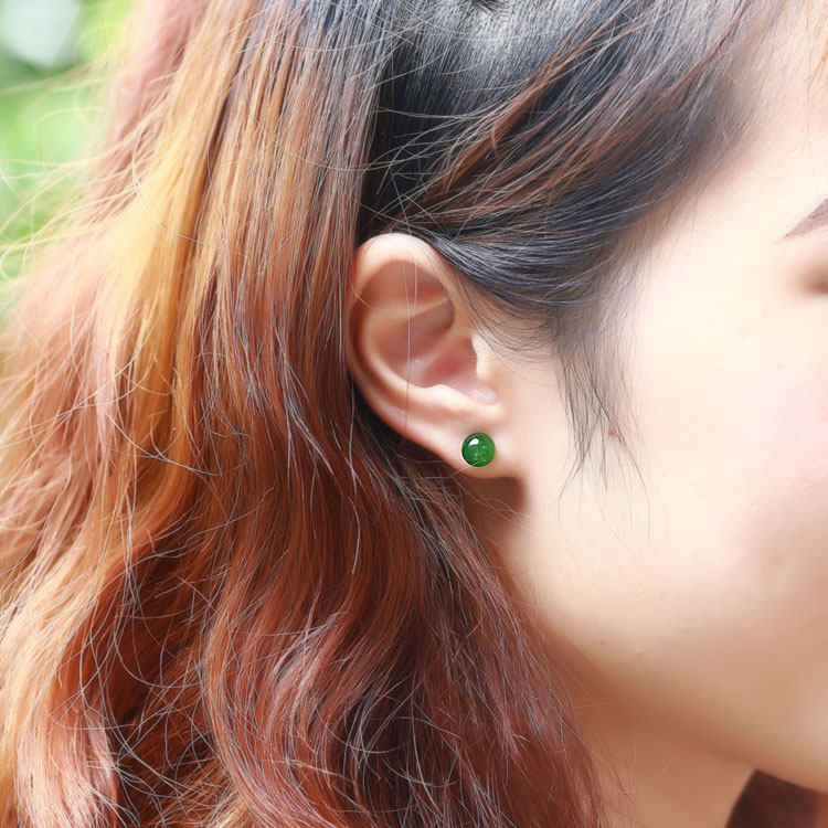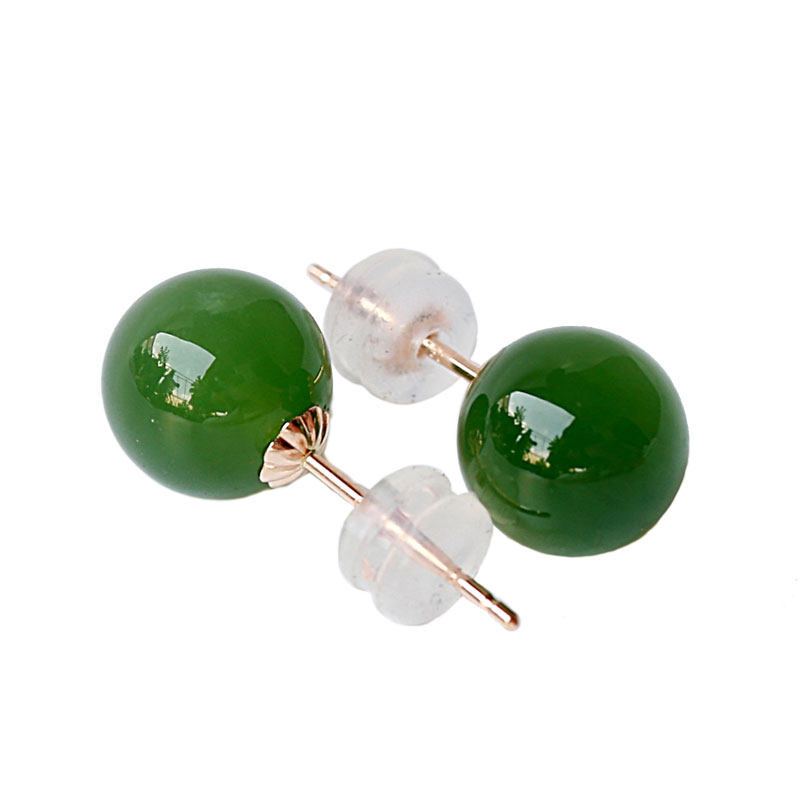18K Gold Inlaid Hetian Jasper Bead Earrings Women's Hetian Jade Earrings with Certificate AJ0078