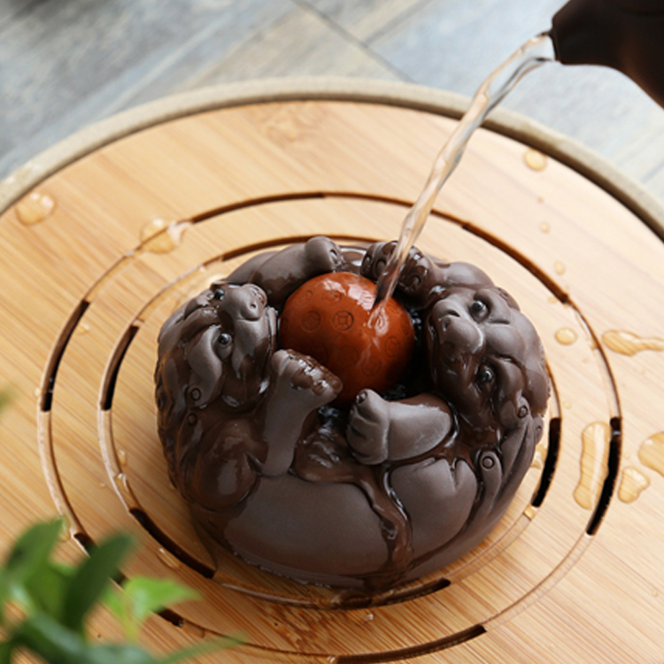 Small tea pet purple sand can raise ornaments Funny tea set Water spray lucky Pixiu tea play tea tray decorations when luck turns