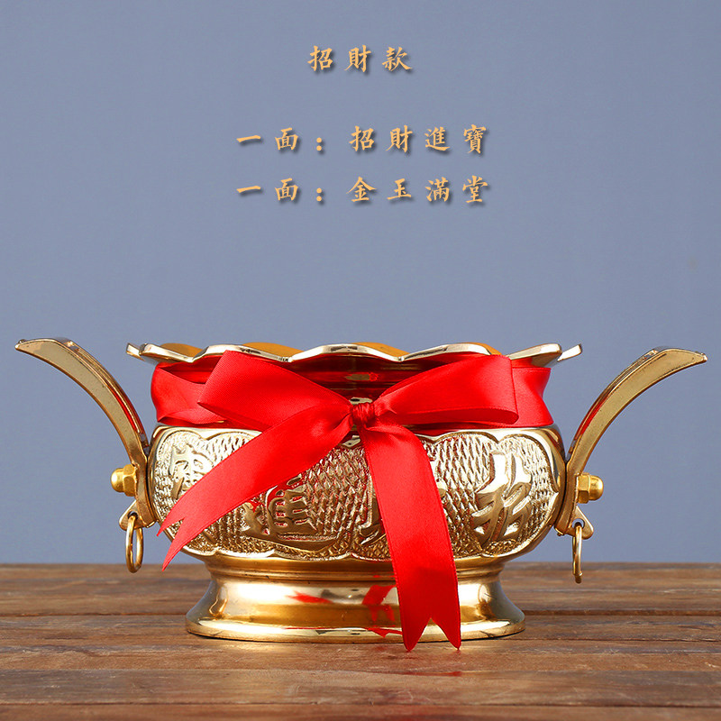 Buddha hall burning incense burner double ear incense burner copper burner dedicated to the god of wealth household incense burner on demand incense burner for Buddha ornaments